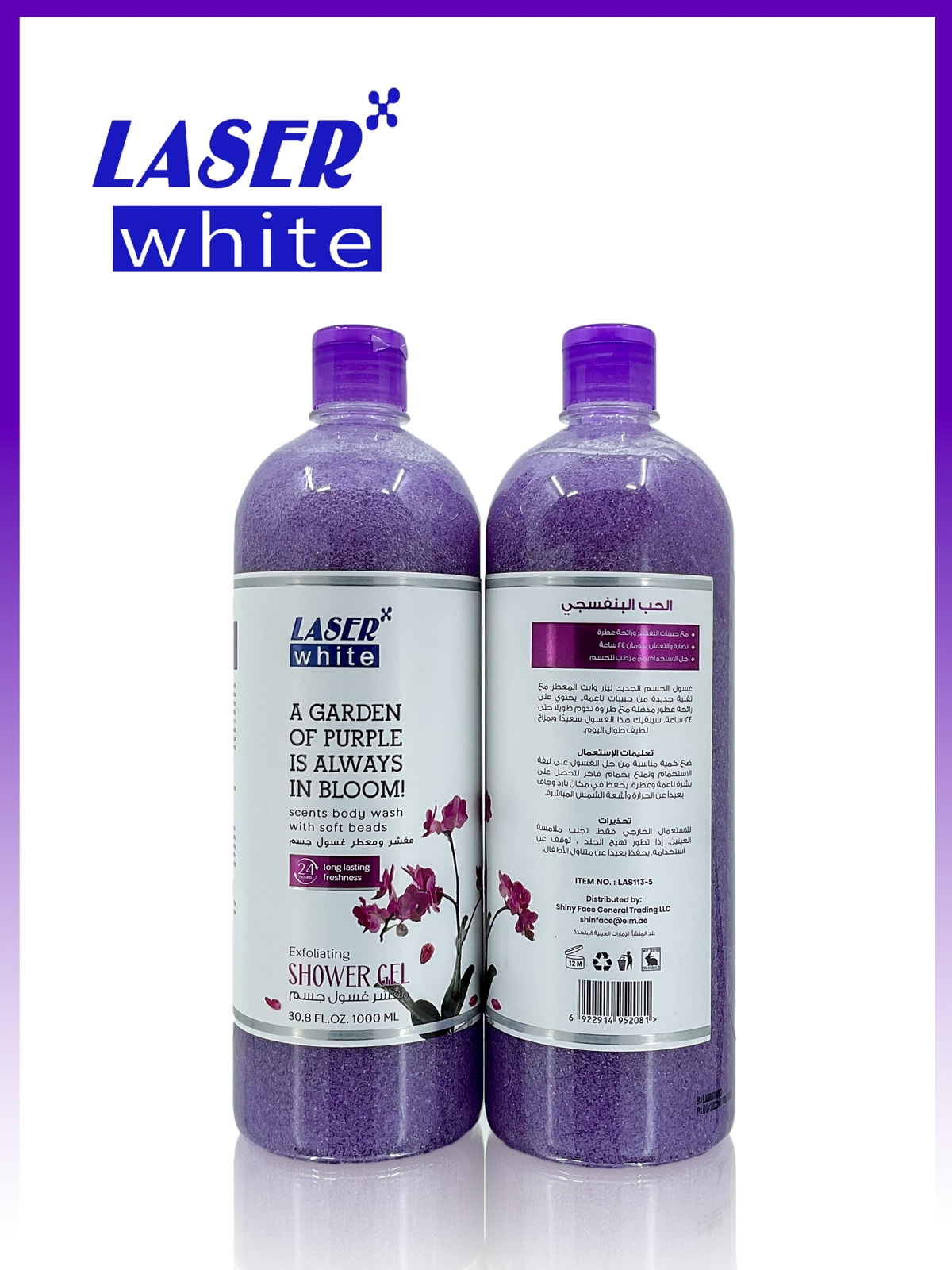 شامپو بدن اسکراب‌دار بنفش LASER WHITE | حجم ۱۰۰۰ میل