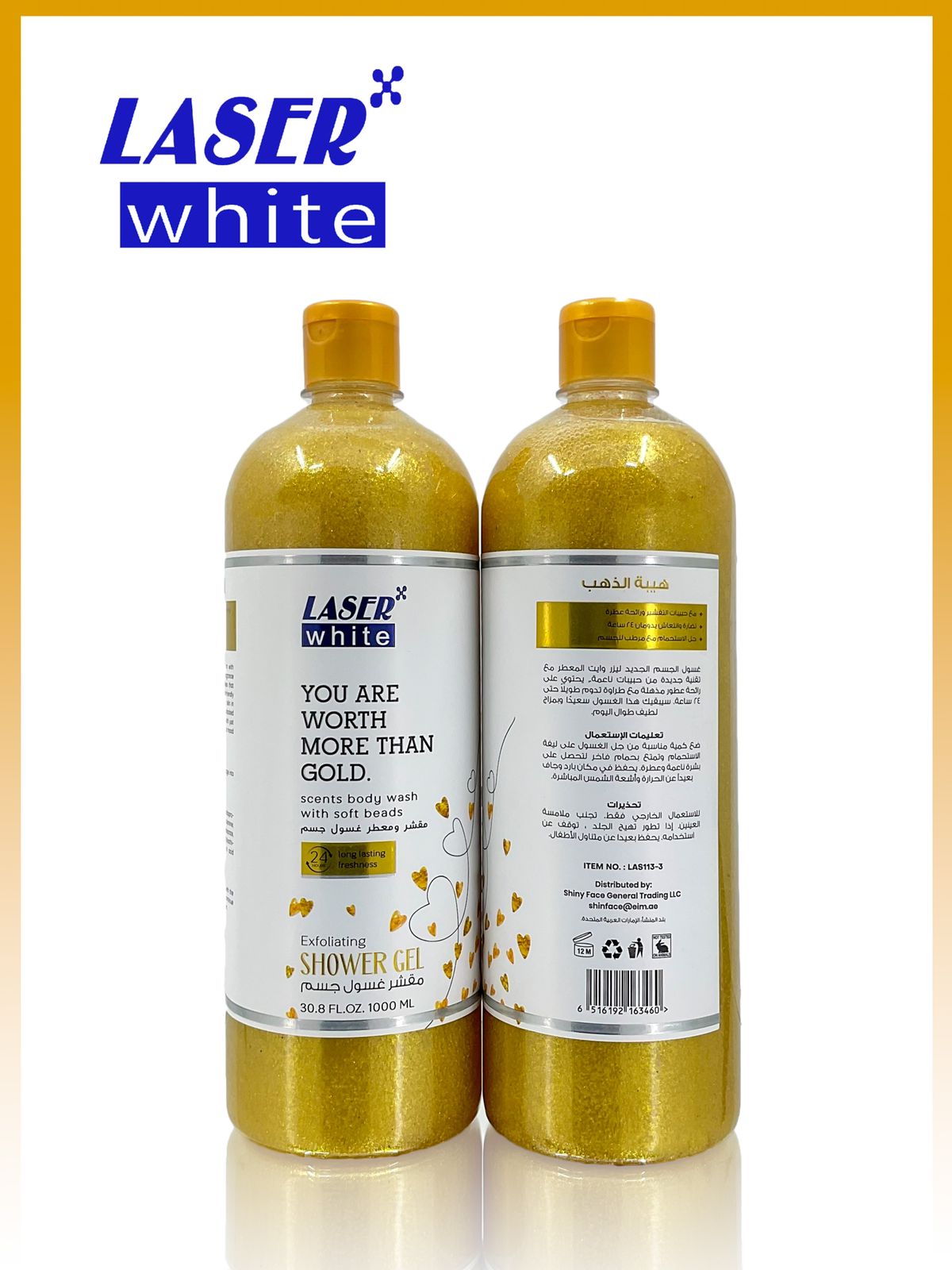شامپو بدن اسکراب‌دار زرد LASER WHITE | حجم ۱۰۰۰ میل