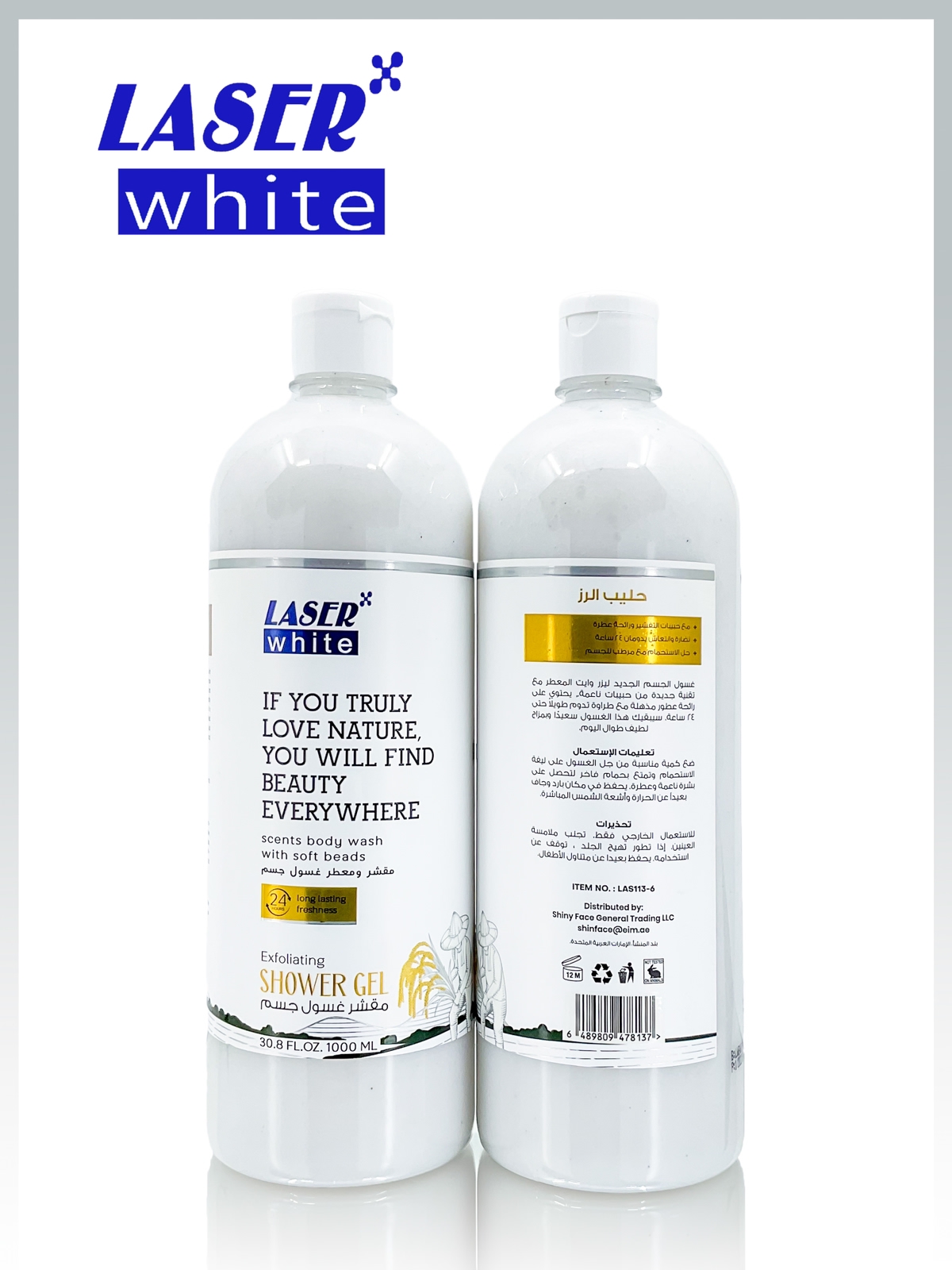 شامپو بدن اسکراب‌دار سفید LASER WHITE | حجم ۱۰۰۰ میل