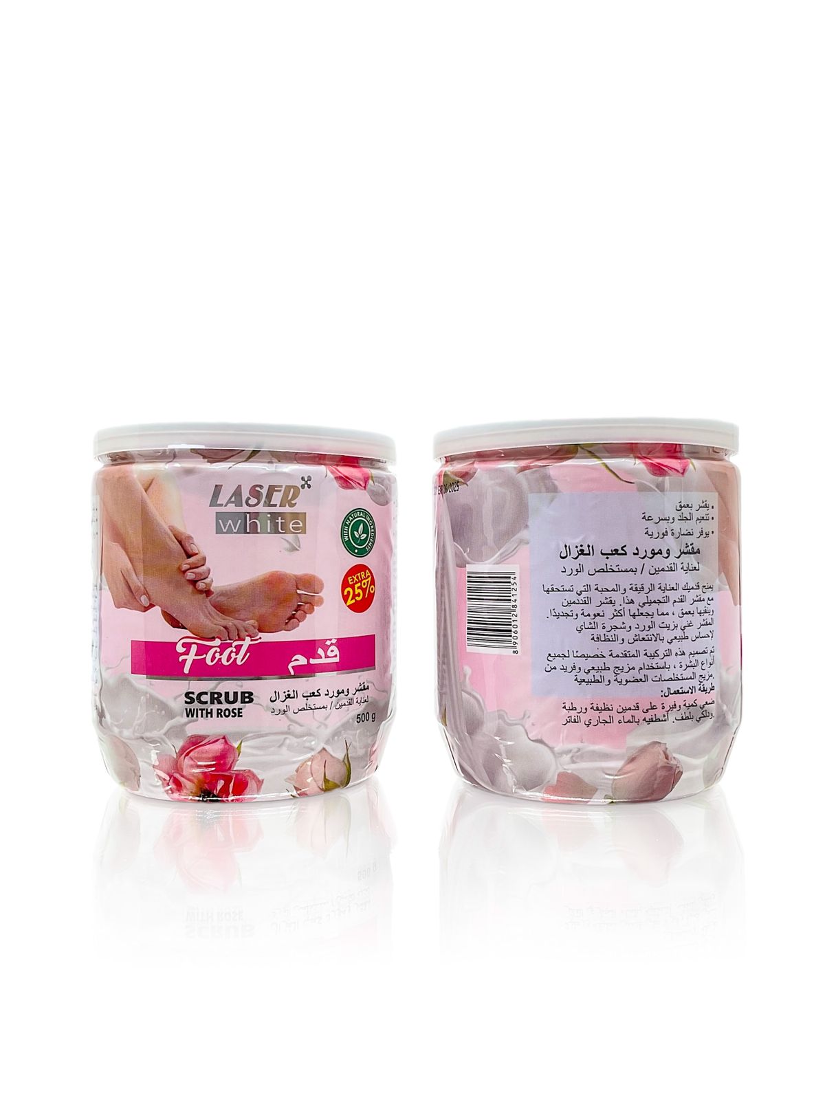 لایهبرداری مؤثر: اسکراب پا و بدن LASER WHITE با عصاره گل رز، بهطور مؤثر پوست را از سلولهای مرده پاک کرده و با لایهبرداری ملایم، آن را نرم و درخشان میکند.