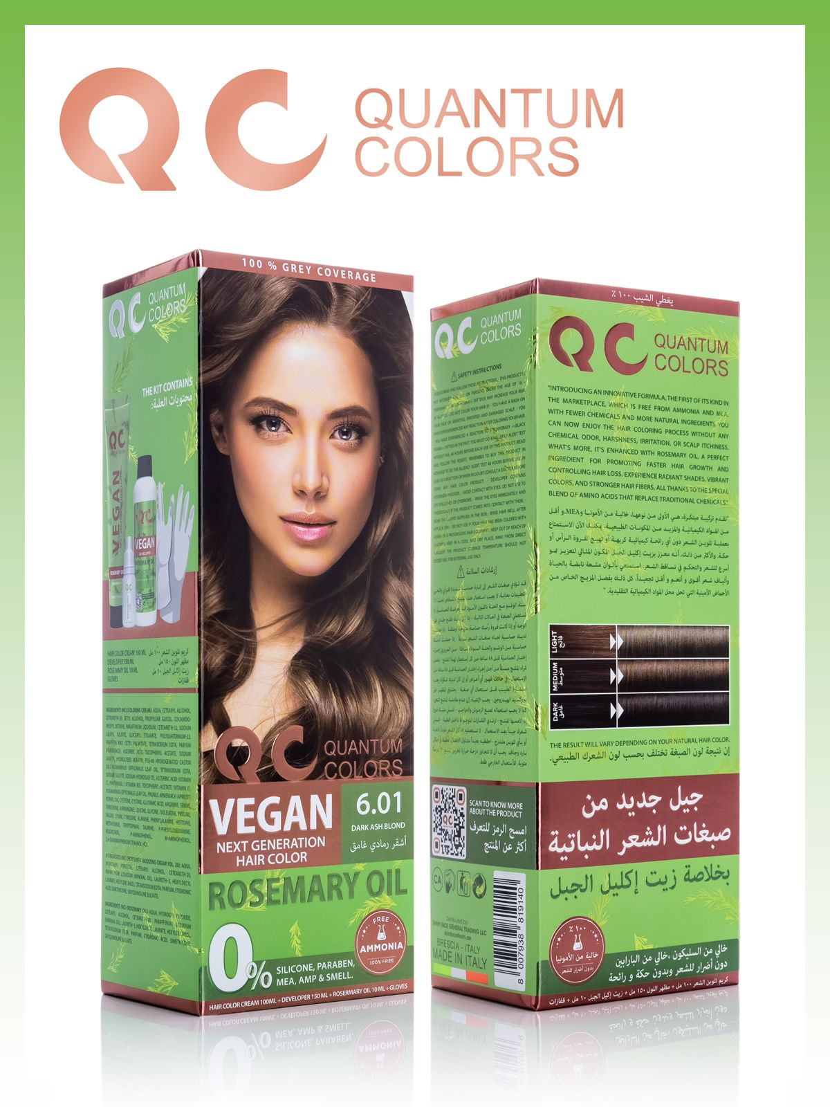 رنگ موی بدون آمونیاک گیاهی وگان QC Quantum Colors – شماره 6.1 | بلوند خاکستری تیره (dark ash blond)