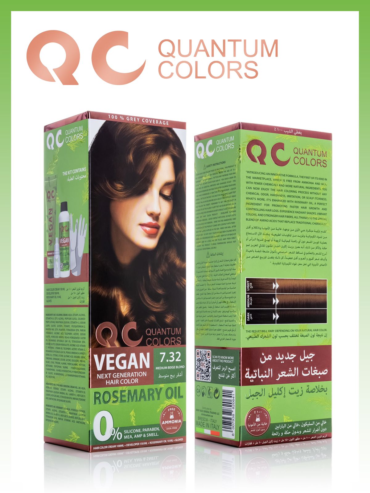 رنگ موی بدون آمونیاک گیاهی وگان QC Quantum Colors – شماره 7.32 | بلوند بژ متوسط (Medium Beige Blond)