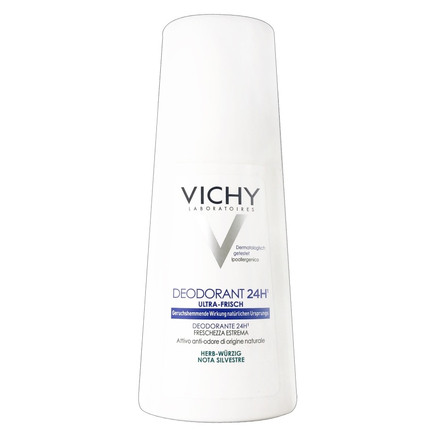 این اسپری دئودورانت با ترکیبی از عوامل ضدباکتری قوی و فرمول ملایم، بدون الکل و آلومینیوم، عملکرد ضدبو (deodorant) را بهشکل کارآمد و قابلاعتماد برای هر نوع پوست (مردانه یا زنانه) ارائه میدهد. مناسب برای پوستهای حساس و مصرف روزانه، طراحیشده توسط لابراتوار درمانی Vichy در فرانسه